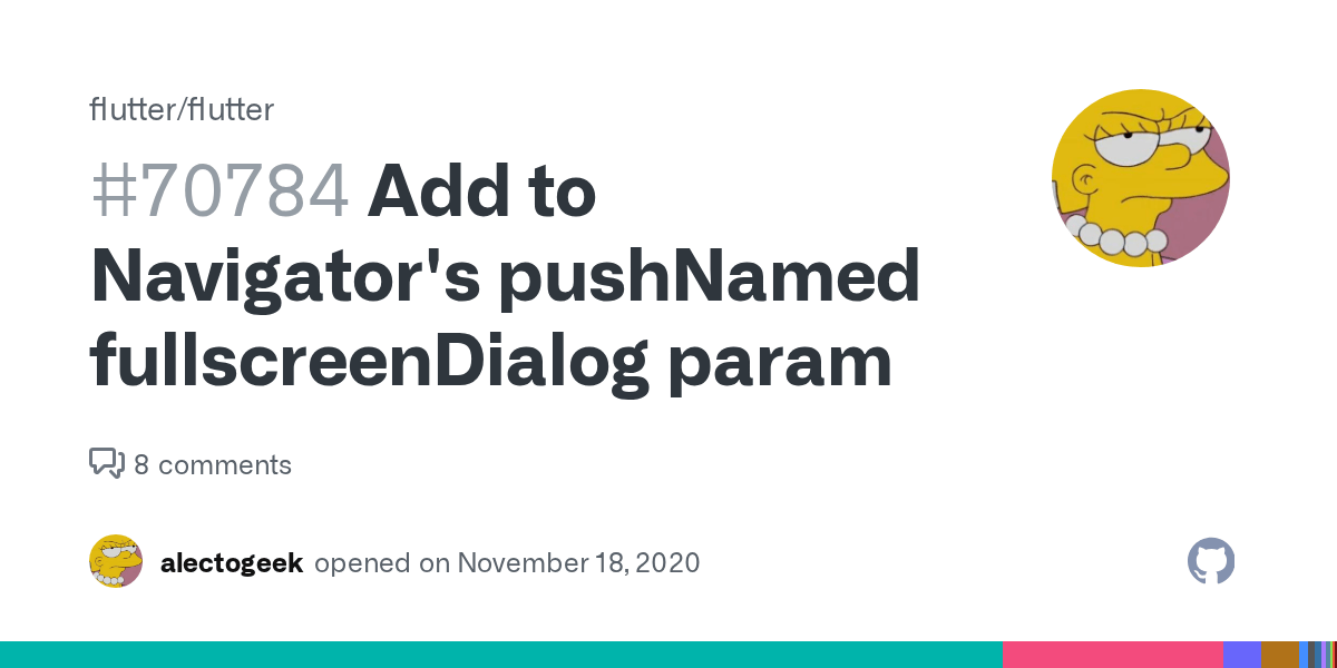 To use the navigator.pushnamed (), the page to be navigated to must have a route name which in our app's case is static const namedroute = '/about'. The route name will be passed to the navigator.ongenerateroute callback. 06.09.2021 · to pass arguments parameter in navigator pushnamed method, we must have a named route.